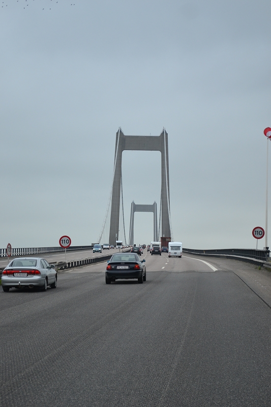 Wieder zurück im Camper suchen wir anhand des Campingführers einen Übernachtungsplatz, den wir gerne anfahren möchten. Hundestet – passend für uns – ein Dorf mit Camperplatz am Hafen nördlich von Kopenhagen. Nachdem abgeklärt ist ob noch Plätze frei sind, steigen wir in den Camper und nehmen die Fahrt über die grosse Belt Brücke in Angriff. Eine Fahrt die uns – dank den Velos die dabei sind – etwas mehr kosten sollte als geplant. 335DKK und dies nur, weil wir die Gesamtlänge von 6m knapp überschreiten. Wenn man bedenkt, dass wir ohne Velos 220DKK bezahlt hätten, lohnt sich die Überlegung, ob wir bei der nächsten Brücke die Velos abnehmen und in den Camper stellen.