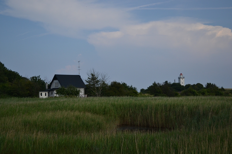 Nachdem wir die Ruhe genossen haben und uns vom wunderschönen Anblick der kleinen Seenlandschaft und des Moorgebietes lösen können, suchen wir den Leuchtturm auf. Schon von der anderen Seite der Bucht erkennen wir das herzig kleine viereckige Türmchen. Davon soll es einige geben in dieser Gegend.