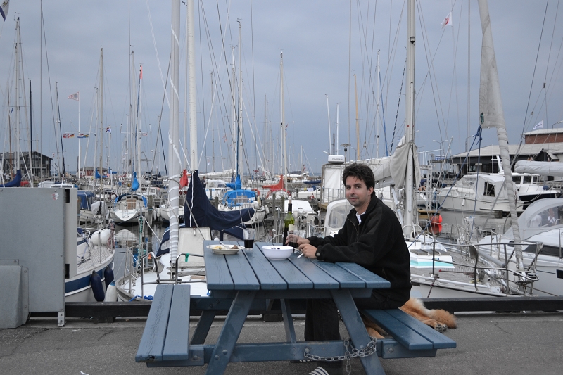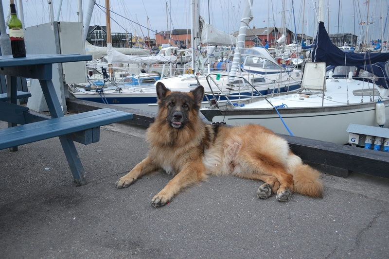 Auf der anderen Seite der Brücke wird der Himmel wieder langsam schwarz, was uns nicht weiter beunruhigt. Solange es trocken und warm bleibt soll es uns recht sein. Die Fahrt führt uns durch verschiedene Dörfchen bis nach Hundestet an den Yachthafen. Die 5 einzigen Camperstellplätze stehen uns zur freien Verfügung, ein Reservationsanruf währe wohl nicht nötig gewesen. Auf den Holztischen nahe den Schiffen gönnen wir uns ein Abendessen, geniessen die salzige Meeresluft und die Ruhe hier.