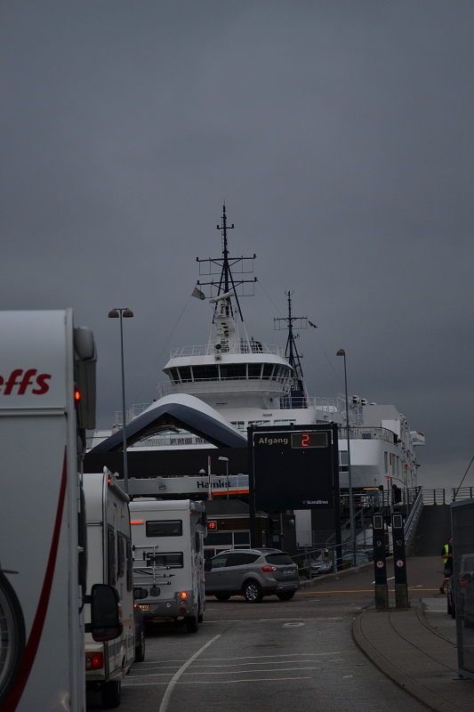 Heute Morgen soll die Hauptprobe mit dem Wassernachfüllen für den Camper stattfinden. Nach einigen Versuchen und nach einigem Hin und Her zwischen Wasserhahn und Camper gelingt es uns, den Frischwassertank wieder zu befüllen. Derweil wird das Frühstück vorbereitet, das natürlich wieder am Hafen vorne auf den Holztischen eingenommen wird. Nach dem Frühstück und einer kurzen Lagebesprechung geht die Fahrt weiter in Richtung Schweden. Da der Weg über die Oeresundbrücke einiges an Zeit kosten würde, beschliessen wir kurzerhand, den Hinweg nach Schweden mit der Fähre von Helsingor (DK) nach Helsingborg (S) zurückzulegen. Eine Fahrt von rund 20Minuten.