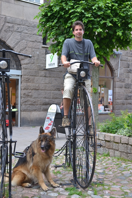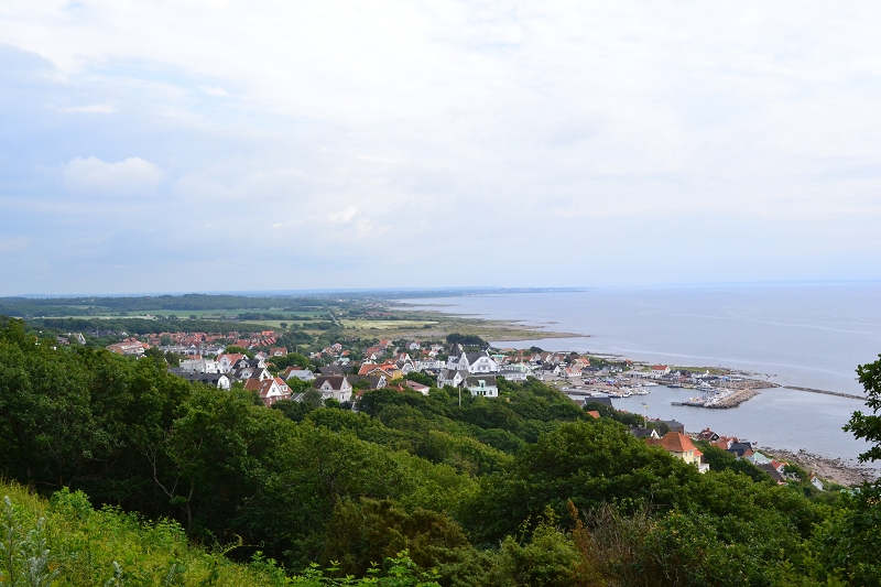 Punkt 12:45 betreten – bzw. befahren – wir das schwedische Territorium in Helsingborg. Die Reise führt uns entlang der Westküste in Richtung Mittelschweden. Unser erster Halt in Schweden ist in Mölle, einem Landspickel, der in die Ostsee ragt und einen Blick auf den Oeresund erlaubt. Kurz nach Mölle beginnt das Naturreservat Kullaberg, an dessen Beginn wir unser Womo parkieren. Entlang den ausgeschilderten – bzw. nicht ausgeschilderten – Wegen stürzen wir uns auf in's Dschungelabenteuer hin zum Aussichtspunkt. Die gewählte Wanderroute stellt sich schnell als anstrengend und kräfteraubend dar. Gewagten Schrittes ziehen wir jedoch weiter von dannen, bis wir schlussendlich mit einem niedlichen Fleck Strand unterhalb eines typisch schwedischen Cafés belohnt werden. Dazu eine herrliche Aussicht auf das Dörfchen Mölle. Fangio erfreut sich seines ersten Meerwasserbades. Etwas schwierig gestaltet sich, dass er aus diesem salzigen Meerwasser nicht trinken darf.