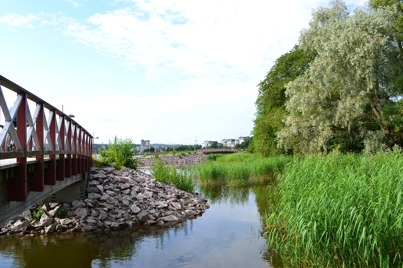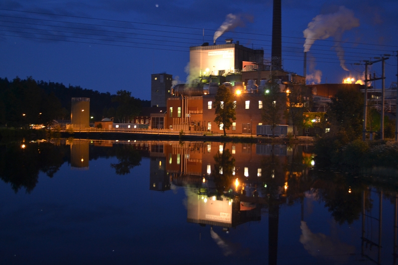 Unser Abendspaziergang – oder besser noch Mitternachtsspaziergang – führt uns rund um die Anlagen der Papierfabrik. Dort entdecken wir einen Kanal, der zur Warenbelieferung über die verschiedenen Seen erbaut wurde. Dank der anderen Lichverhältnisse um diese Jahreszeit, ist es um Mitternacht noch fast hell. So spazieren wir entlang des Kanals noch ein wenig weiter und geniessen den Abend. Hinter der Papierfabrik liegt ein Privatgelände, entlang dessen ein Spazierweg durch den Park führt. Irgendwo hier soll gemäss Wegweiser ein Freilichttheater zu finden sein.