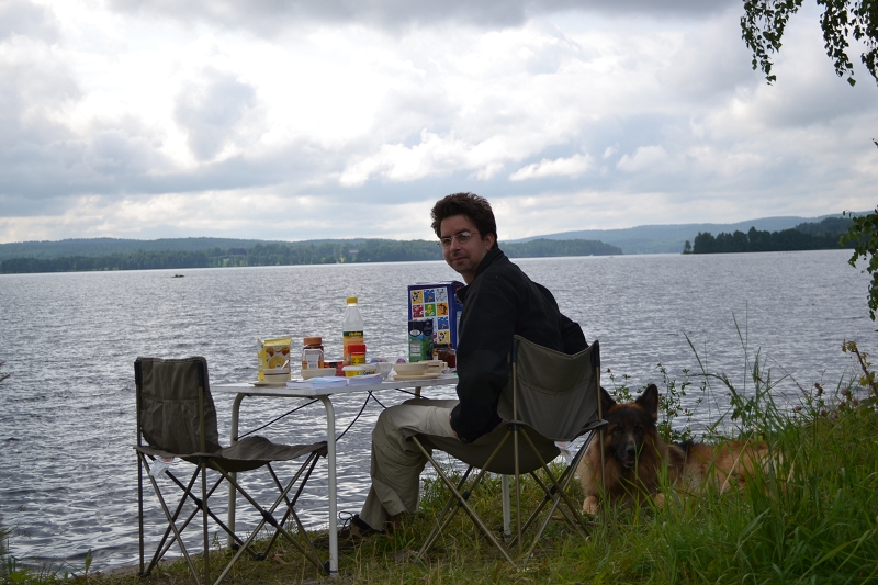 Dank dem späten Sonnenuntergang gewöhnt man sich in Schwedens Sommer schnell an einen anderen Tagesrhythmus. Bei Helligkeit am Vorabend schon früh ins Bett zu steigen liegt nicht wirklich drin. Im Gegenteil, das warme gemütliche Klima regt zu langen Nachtwanderungen und Abenteuern an. An ein Ausschlafen am Morgen danach ist aber nicht zu denken, denn bei den warmen Temperaturen wird es schnell warm im Camper und viel zu heiss um lange zu schlafen. So stehen wir schon wieder bei Zeiten auf und freuen uns auf ein Frühstück mit Seesicht.