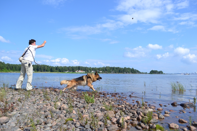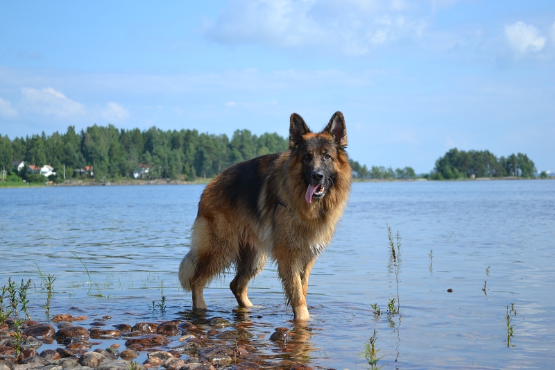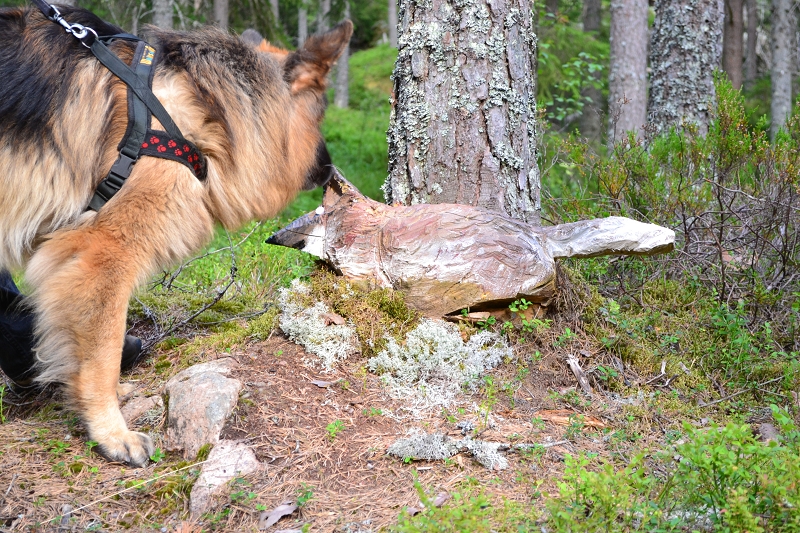Danach geht es auf zum "Hundbad" wo Fangio sich genüsslich seinem Lieblingselement widmen kann. Das Wasser im Vänernsee ist sehr warm und lädt zum Baden ein. Nachdem das Nass genossen ist, spazieren wir durch den schönen Wald und suchen den Cache hier beim Platz. Hier wimmelt es von Heidelbeeren und man wagt kaum einen Schritt neben den Weg zu machen. Natürlich finden wir den Cache trotzdem.