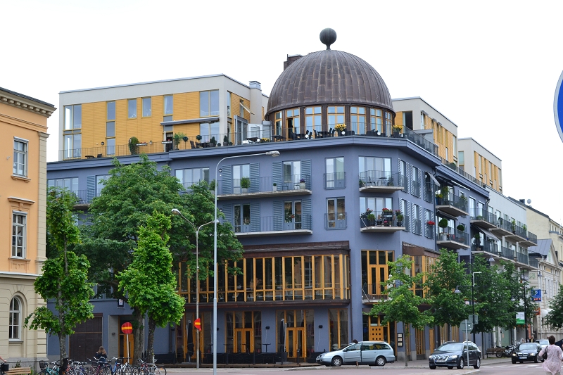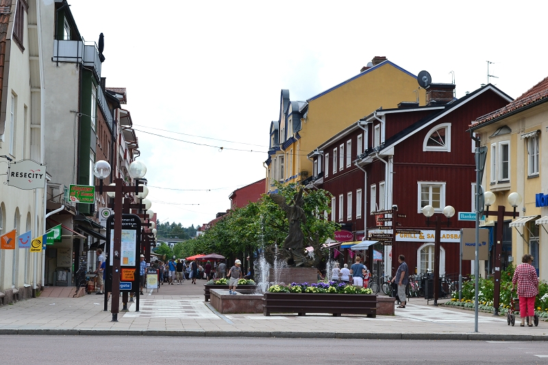 So wenig Leute sind hier zu finden, ideal um sich auf das Stadtgewimmel vorzubereiten. Weiter geht die Erkundungstour ins Innere von Vänersborg zur Kartonfabrik, vorbei an der "Stokfabrik" bis hin zum alten Wasserturm. Die roten schwedischen Backsteingebäude sind auch hier überall wieder zu finden, sogar die Kirche ist passend in diesem Stil erbaut.