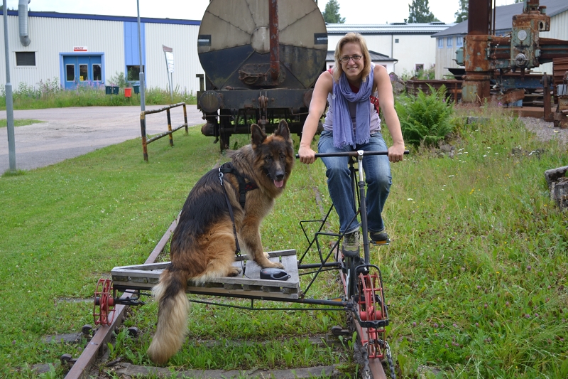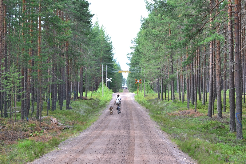 Ein Elch hat sich in der Nacht nicht gemeldet, oder wir hätten ihn nicht bemerkt. Bevor uns die Fahrt weiter in den Norden bringt möchten wir die Umgebung unserer Schlafstelle noch ein wenig genauer erkunden. Jetzt kommen endlich die Fahrräder zum Zuge. Wir satteln unsere Bikes, schliessen den Camper ab und düsen los in Richtung Siljansee hinunter durch den Wald. Wie auch auf den Autostrassen, sind die Waldwege ziemlich in die Länge gezogen und alles sieht mehr oder weniger gleich aus, auf den ersten Blick. Wir staunen nicht schlecht als wir plötzlich auf eine Eisenbahnschiene treffen, die quer durch den Wald führt. Über den steilen Waldpfad sausen wir weiter hinunter in Richtung See.